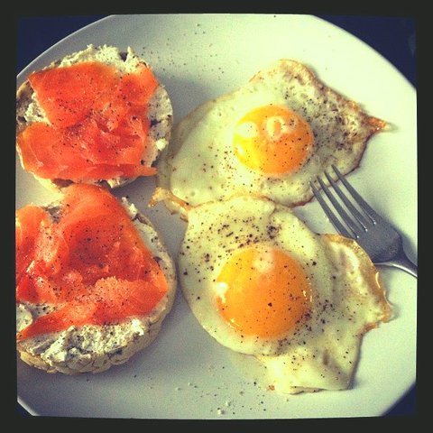 Утром,убегая на работу,стараюсь сьесть основную массу каллорий...не представляю жизнь без яичницы и кофе.